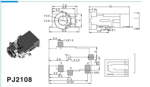 分類(lèi):2.5(SMT)耳機插座