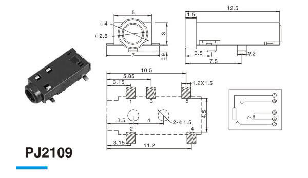 分類(lèi):2.5(SMT)耳機插座